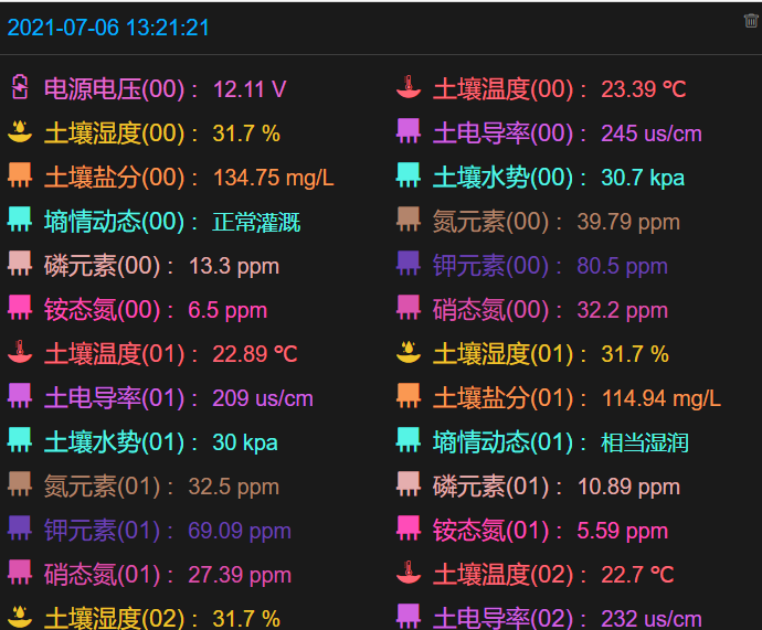3、可在線對土壤水分、土壤溫度、土壤電導(dǎo)率、土壤養(yǎng)分、土壤含鹽量、銨態(tài)氮、硝態(tài)氮、速效氮、速效磷、有效鉀、水勢、PH等參數(shù)進(jìn)行監(jiān)測。