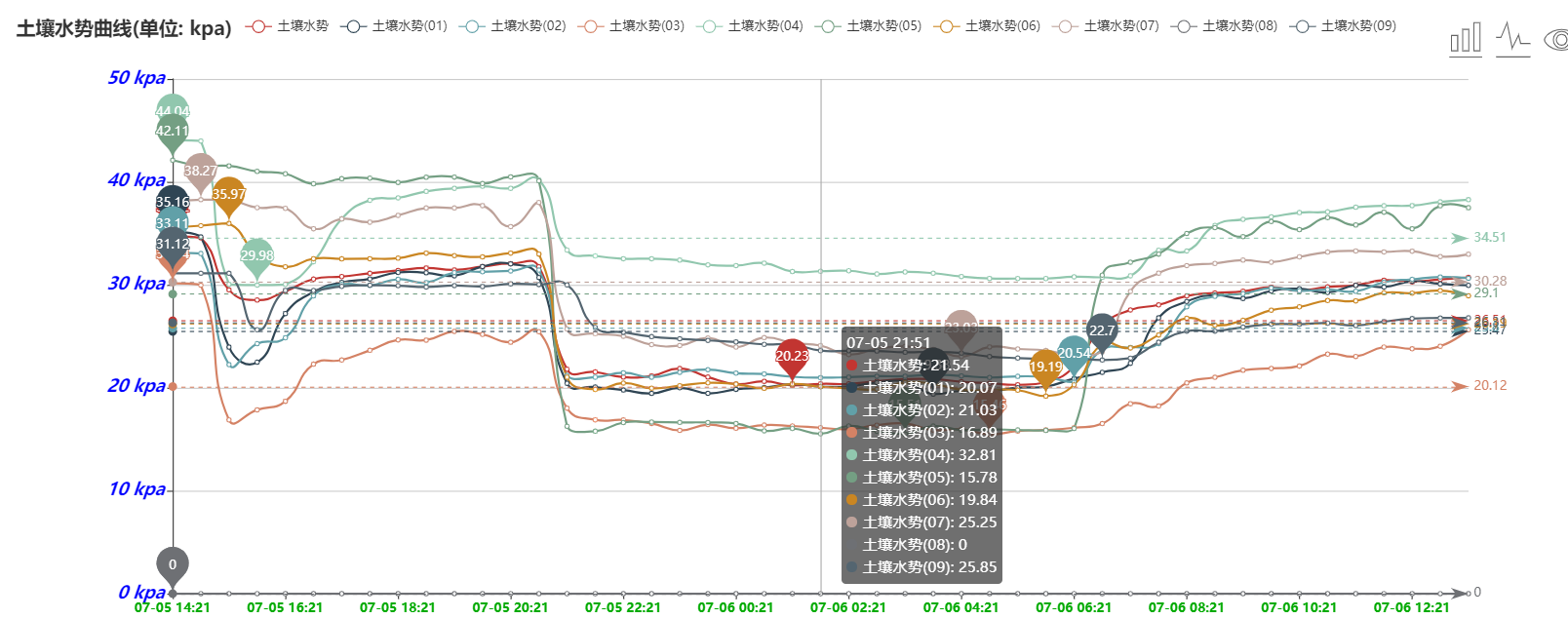 7、用戶可以隨時(shí)通過手機(jī)和計(jì)算機(jī)遠(yuǎn)程查看、下載數(shù)據(jù)。軟件可以查看最高值、最低值、平均值。用戶可根據(jù)土壤水分和電導(dǎo)率、氮磷鉀養(yǎng)分的數(shù)據(jù)變化來分析土壤各個參數(shù)之間的關(guān)聯(lián)性和相互影響。
