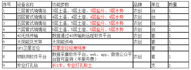 注:可定制測試深度、測試層數(shù)、土層間隔、標配土壤參數(shù):溫度、濕度、可選參數(shù):鹽分、電導率、土壤水勢、土壤成分(供參考)氮、磷、鉀、銨態(tài)氮、硝態(tài)氮。