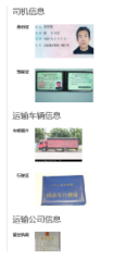 6、物流信息。司機信息(駕駛證、身份證)、車輛信息(車輛照片、行駛證運營許可證)、運輸公司信息(營業(yè)執(zhí)照、運營許可證)、運輸路線(起點和終點)。