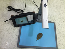 葉片蟲(chóng)斑面積測(cè)量系統(tǒng)由圖像采集儀和裝入自主開(kāi)發(fā)軟件的平板組成,采用面積測(cè)量算法,根據(jù)葉片輪廓特征提取、圖形實(shí)物轉(zhuǎn)換、邊緣檢測(cè)等技術(shù),所測(cè)葉片面積、周長(zhǎng)、蟲(chóng)洞數(shù)量等參數(shù)。