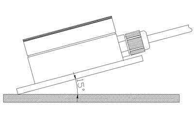 安裝時(shí),應(yīng)保持傳感器感應(yīng)面與水平面成15度夾角,以防雨、雪的堆積對(duì)傳感器測(cè)量造成影響。