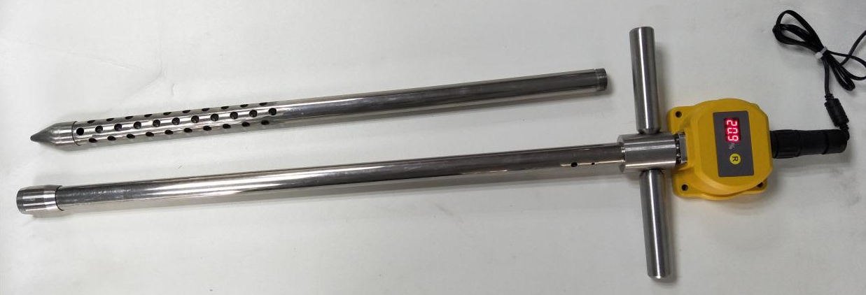 主要用于堆肥坑、堆肥窖以及堆肥實(shí)驗(yàn)器中氧含量的自動(dòng)控制與監(jiān)測。外部使用不銹鋼防護(hù)裝置對(duì)氧傳感器探頭進(jìn)行保護(hù),防護(hù)裝置頭部有進(jìn)氣孔,即保證堆肥物料中的氣體可以順暢擴(kuò)散到探頭附近進(jìn)行實(shí)時(shí)準(zhǔn)確測量,清洗方便,又防止堆肥物料中的顆粒物質(zhì)堵塞探頭頂部的分子隔離柵導(dǎo)致敏感器件損壞。