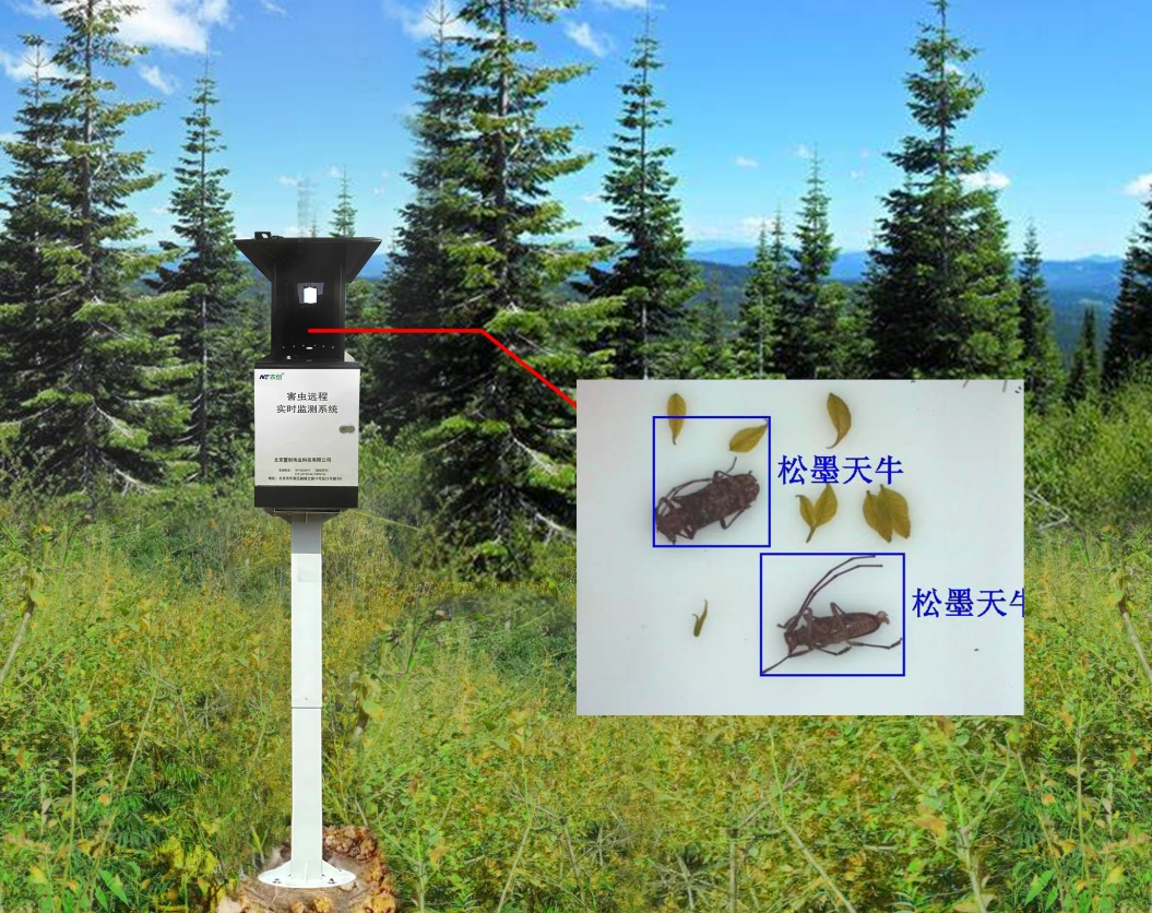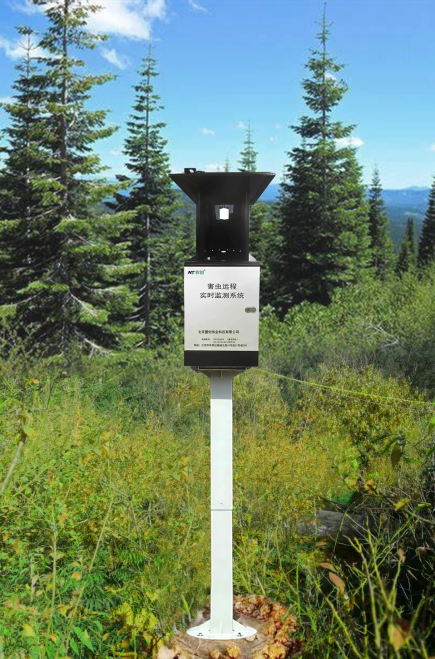 MC-HCTN型天牛遠(yuǎn)程實時監(jiān)測系統(tǒng)使用可上下調(diào)整高度的伸縮式立桿安裝,戶外防護(hù)箱結(jié)構(gòu)設(shè)計。采用昆蟲信息素誘捕技術(shù),高壓網(wǎng)殺滅害蟲的原理,運用昆蟲信息素誘芯誘捕、定向誘殺害蟲,統(tǒng)計殺蟲數(shù)量、害蟲種類,實時害蟲圖像,監(jiān)測預(yù)警蟲害發(fā)生、監(jiān)測蟲害發(fā)展數(shù)據(jù)曲線狀態(tài)等。由遠(yuǎn)程實時監(jiān)控終端通過4G無線傳輸系統(tǒng)將采集數(shù)據(jù)、圖像發(fā)送至服務(wù)器。實現(xiàn)遠(yuǎn)程控制及數(shù)據(jù)統(tǒng)計分析蟲害信息。可通過更換誘芯,實現(xiàn)對不同害蟲進(jìn)行滅殺監(jiān)測。